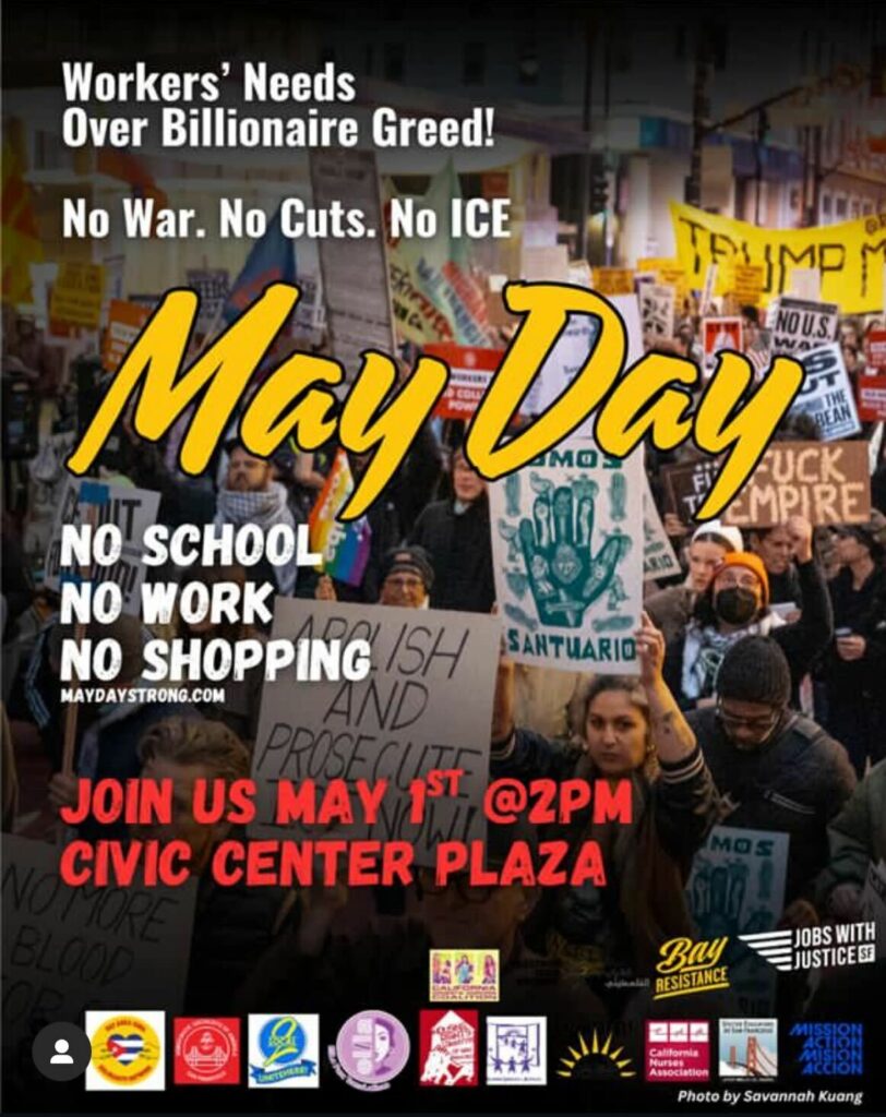 Join the DSA SF Action Network and pledge NO WORK, NO SCHOOL, NO SHOPPING on MAY DAY 2026!! Fight for workers over billionaires, say NO to ICE, NO to War!!