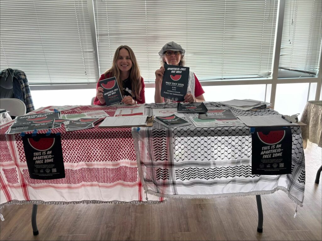 In addition to our store canvass, members also attended Palestine to the Bay International Labor Solidarity Panel and Fundraiser at SEIU 1021. Members from the Palestine New Federation of Trade Unions attended to share about the importance of organizing BDS campaigns in the US. We talked to attendees and shared about our NA4A campaign and how we are coordinating with small businesses to participate in May Day. We also made connections with Oakland Divest to coordinate our divestment work.